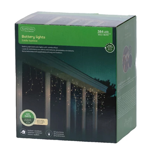 Dimensione mt 14,0x0,75 384 Led Cavo Bianco, Lampada 5mm- Funzionamento a pile